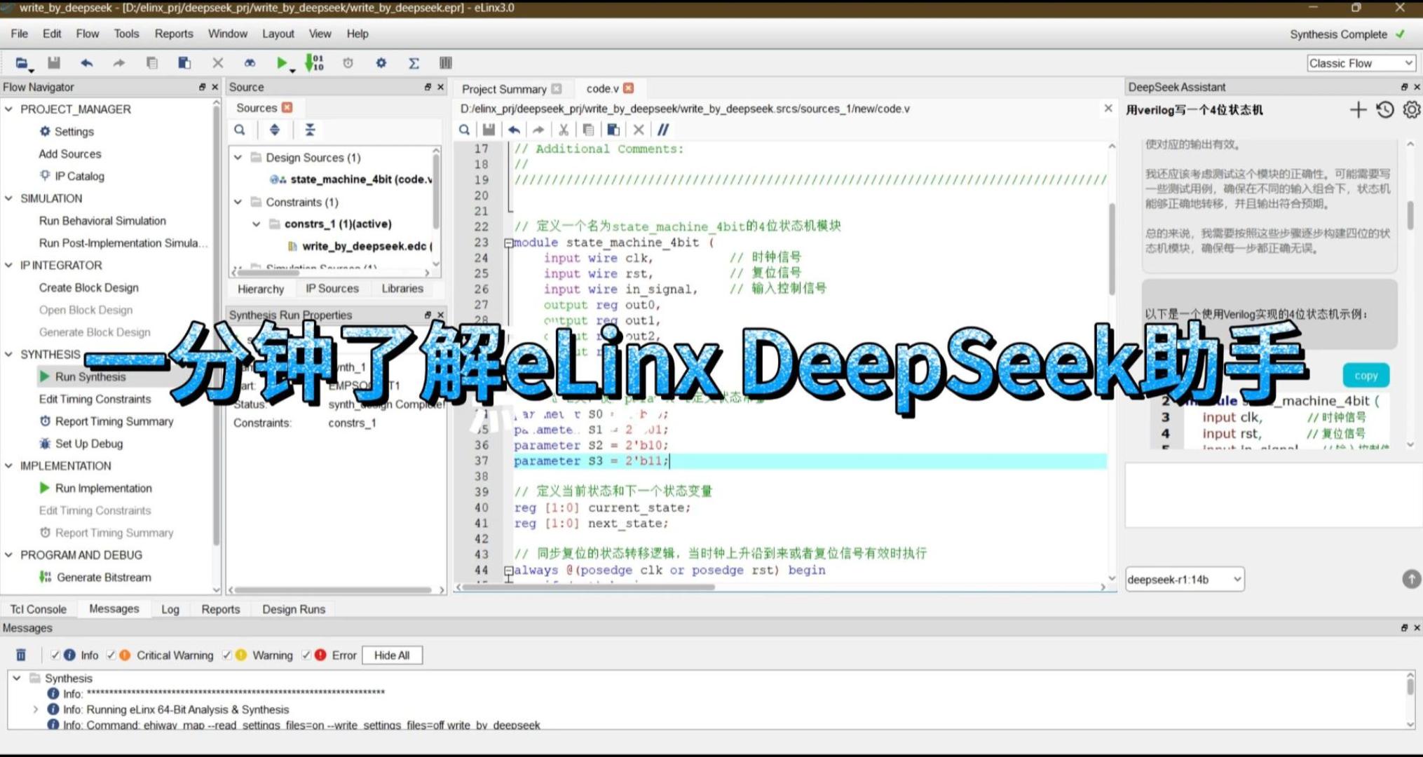 亿灵思®策划套件(eLinx Design Suite)是中科亿海微研制的一款拥有国产自主智力产权的大规模可编程逻辑芯片开发软件,可以支撑千万门级以上可编程逻辑芯片器件的策划开发。eLinx®软件不仅可(ke)以支撑工业界规范的开发程(cheng)(cheng)(cheng)(cheng)序(xu),即从RTL综合(he)到配(pei)置码流生(sheng)成下载的全(quan)༒套操作(zuo),而且可(ke)以提供面向(xiang)嵌入式可(ke)编(bian)(bian)程(cheng)(cheng)(cheng)(cheng)电(dian)路IP核定制(zhi)开发的考评程(cheng)(cheng)(cheng)(cheng)序(xu),帮助终(zhong)端(duan)终(zhong)端(duan)终(zhong)端(duan)用(yong)户定制(zhi)嵌入式可(ke)编(bian)(bian)程(cheng)(cheng)(cheng)(cheng)电(dian)路IP核资源(yuan)的规模和(he)排布(bu),并生(shen💧g)成相应的芯片数据库(ku),为终(zhong)端(duan)终(zhong)端(duan)终(zhong)端(duan)终(zhong)端(duan)用(yong)户提供与可(ke)编(bian)(bian)程(cheng)(cheng)(cheng)(cheng)逻辑(ji)芯片成片相同的EDA全(quan)程(cheng)(cheng)(cheng)(cheng)序(xu)劳务(wu)。